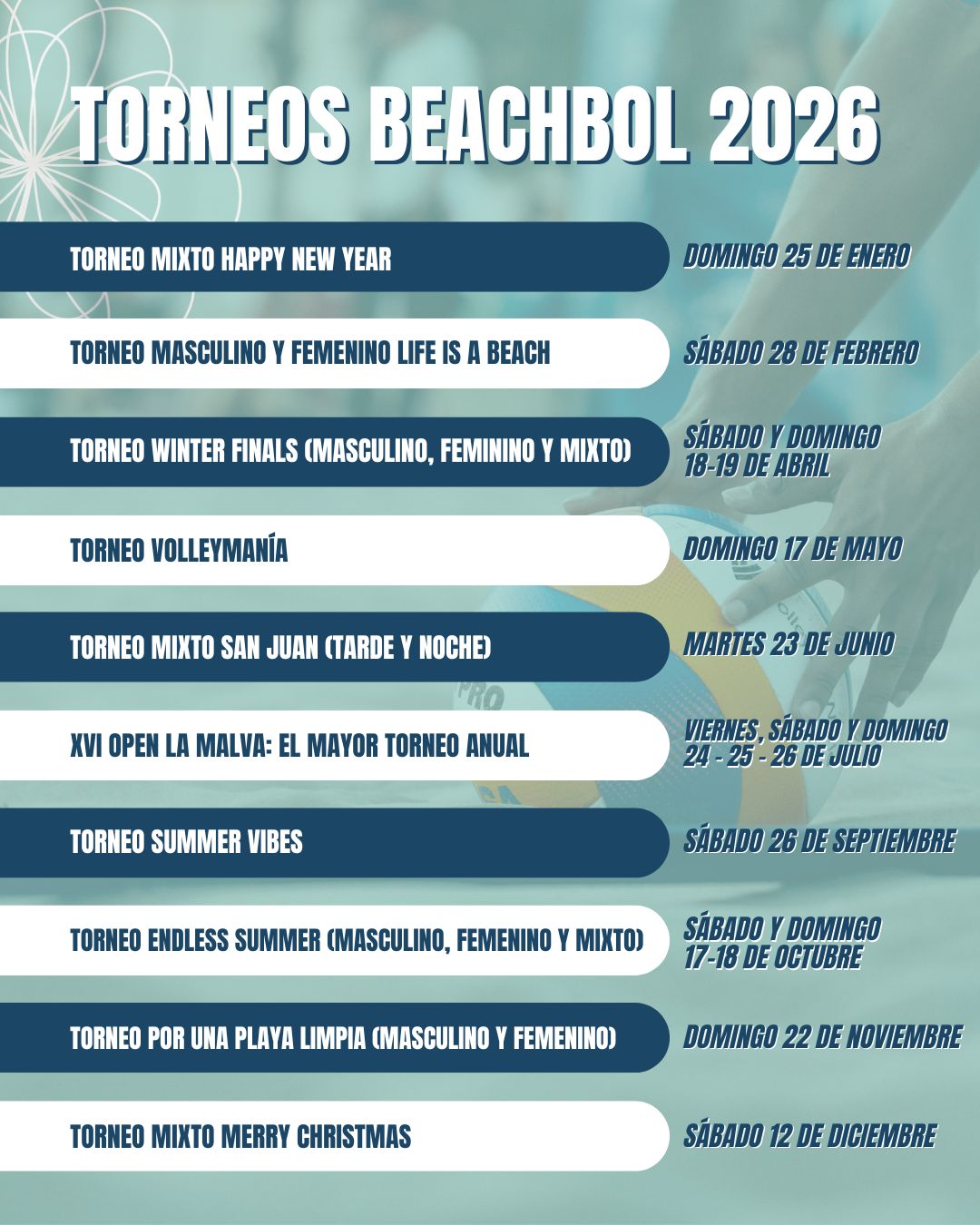 Estad atentos a nuestras redes y a través de nuestra web para ver nuestros calendario y plazos de inscripciones. ¡Nos vemos en la playa!